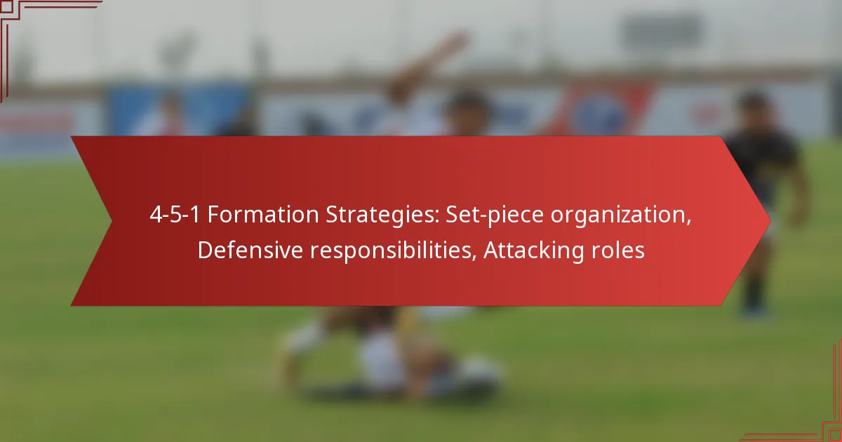 The 4-5-1 formation is a tactical setup in soccer that features four defenders, five midfielders, and one forward, emphasizing a strong midfield presence for controlling possession and maintaining defensive solidity. Effective organization of set-pieces is crucial, requiring clear roles and communication among players to enhance both defensive and offensive strategies. Additionally, the formation’s defensive responsibilities demand disciplined positioning and coordination to thwart opposing attacks.